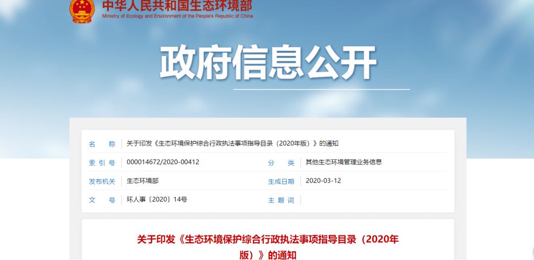 企业超标排污如何处罚?哪些情况可以对企业采取查封、扣押等行政强制措施?生态环境部17日公布了《生态环境保护综合行政执法事项指导目录(2020年版)》。